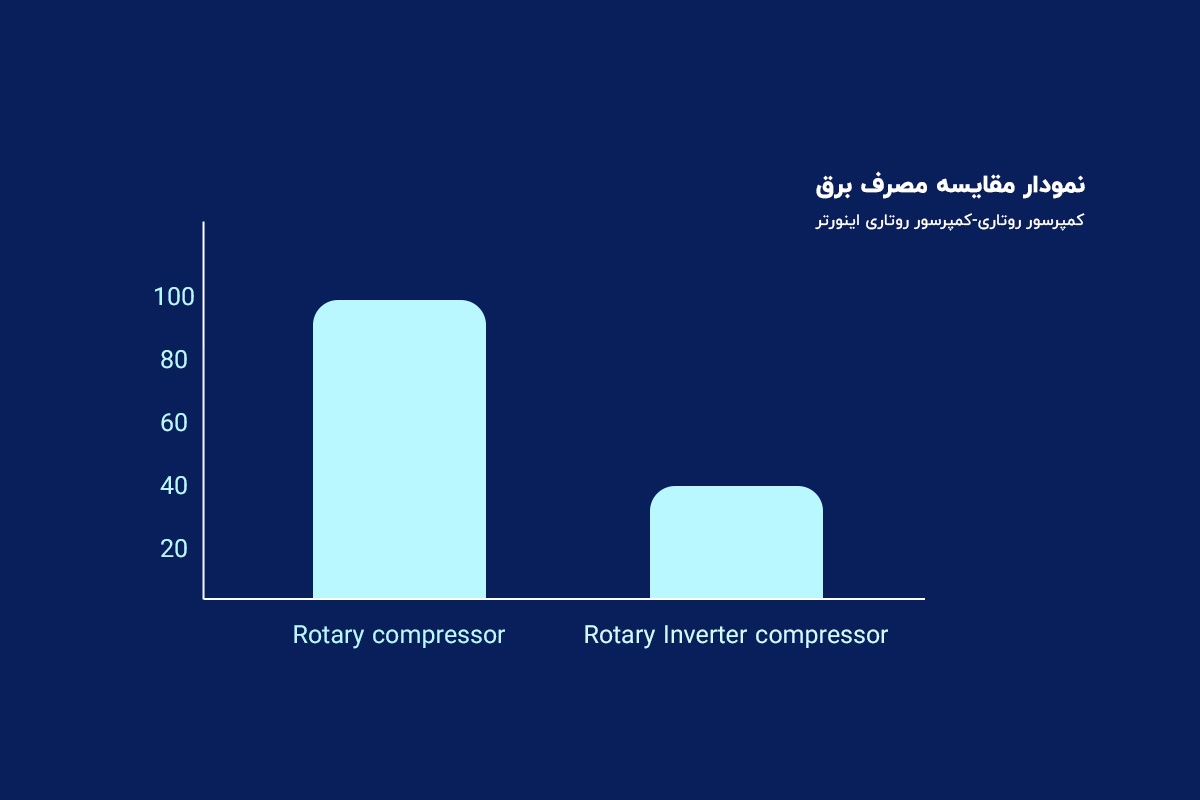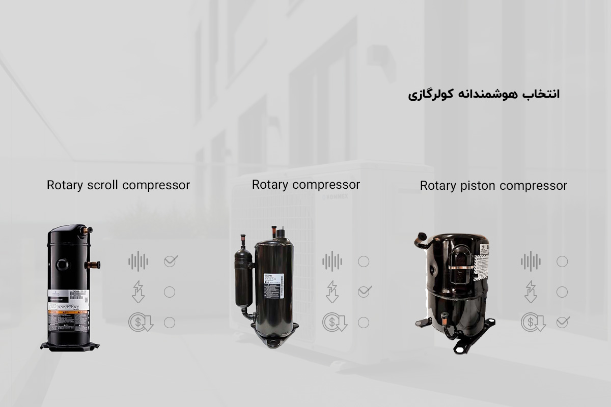 راندمان: کمپرسورهای روتاری به طور کلی راندمان بالاتری نسبت به کمپرسورهای پیستونی دارند، به این معنی که با مصرف انرژی کمتر، میتوانند همان میزان سرمایش را تولید کنند.